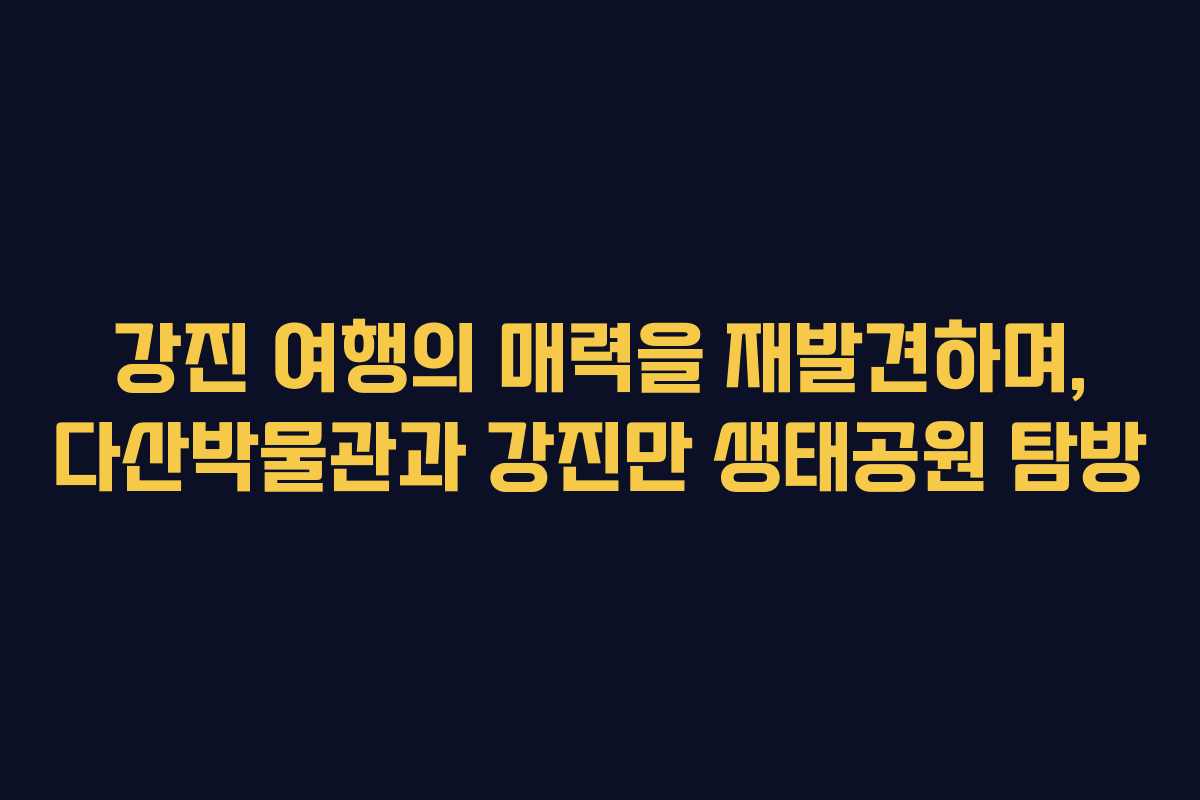 강진은 역사와 자연이 어우러진 매력적인 여행지이다. ‘강진 반값 여행’ 이벤트를 통해 여행 비용의 절반을 환급받는 기회를 이용해 전남의 아름다움을 만끽할 수 있다. 이번에는 다산박물관과 강진만 생태공원에서의 경험을 공유하고자 한다.