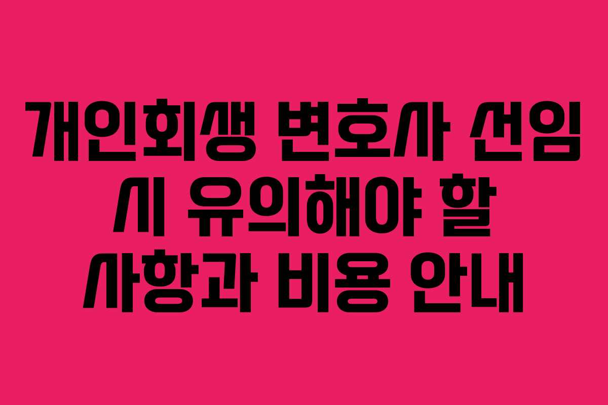 개인회생은 경제적 어려움을 겪고 있는 많은 이들에게 중요한 선택지가 되고 있습니다. 그러나 이 과정에서 적절한 정보를 확보하지 못하면 오히려 더 큰 손실을 초래할 수 있습니다. 본 글에서는 개인회생을 준비할 때 유의해야 할 사항과 비용 구조에 대해 상세히 설명하겠습니다.