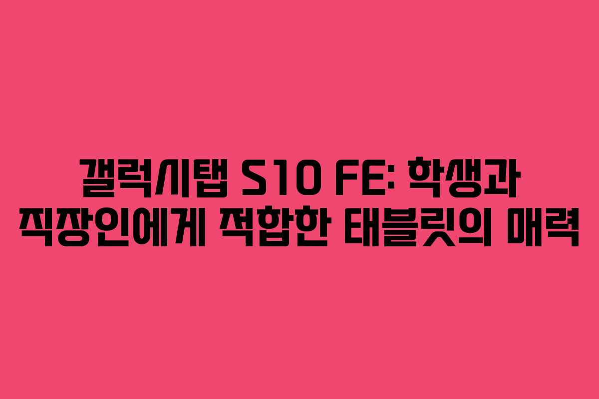 갤럭시탭 S10 FE는 디자인, 성능, 기능 모두에서 우수한 제품이다. 이 태블릿은 다양한 작업을 수행할 수 있는 능력을 갖추고 있으며, 학생과 직장인에게 모두 적합하다. 지금 바로 갤럭시탭 S10 FE의 매력을 경험해 보길 권장한다.