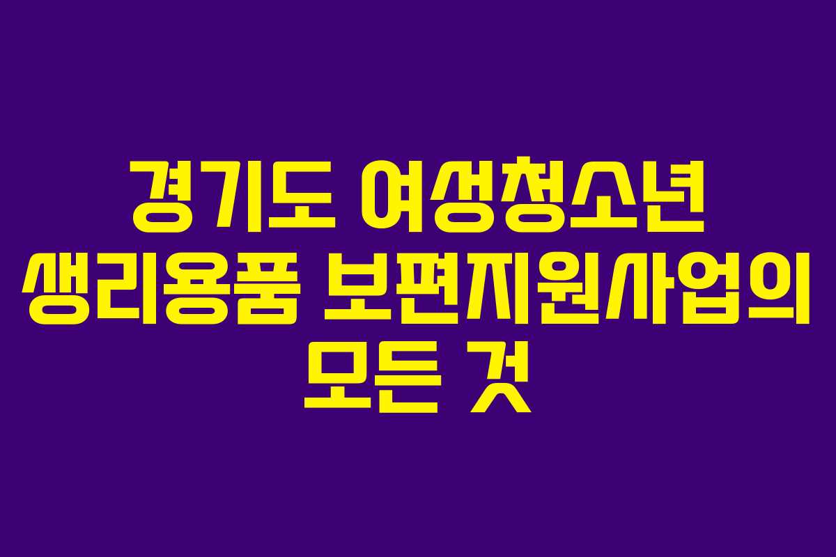 여성청소년의 건강하고 당당한 일상을 위한 경기도의 ‘여성청소년 생리용품 보편지원사업’은 많은 이들에게 큰 도움이 될 수 있는 제도입니다. 이 사업의 목적과 신청 방법, 지원 내용 등을 알아보겠습니다.