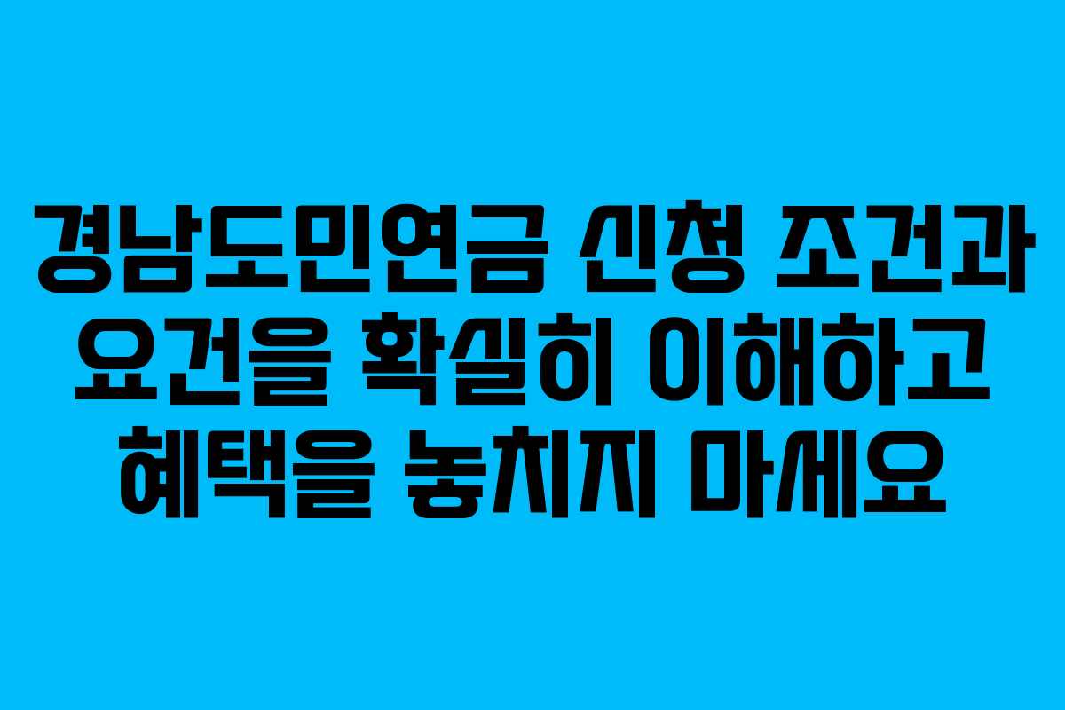 경남도민연금은 도민의 노후를 도와주는 중요한 제도로, 신청을 위해서는 정해진 조건을 모두 충족해야 한다. 모집 인원과 접수 일정에 따라 빠르게 진행될 수 있으므로, 본인의 조건을 점검하고 필요한 서류를 준비하여 신청하는 것이 중요하다.