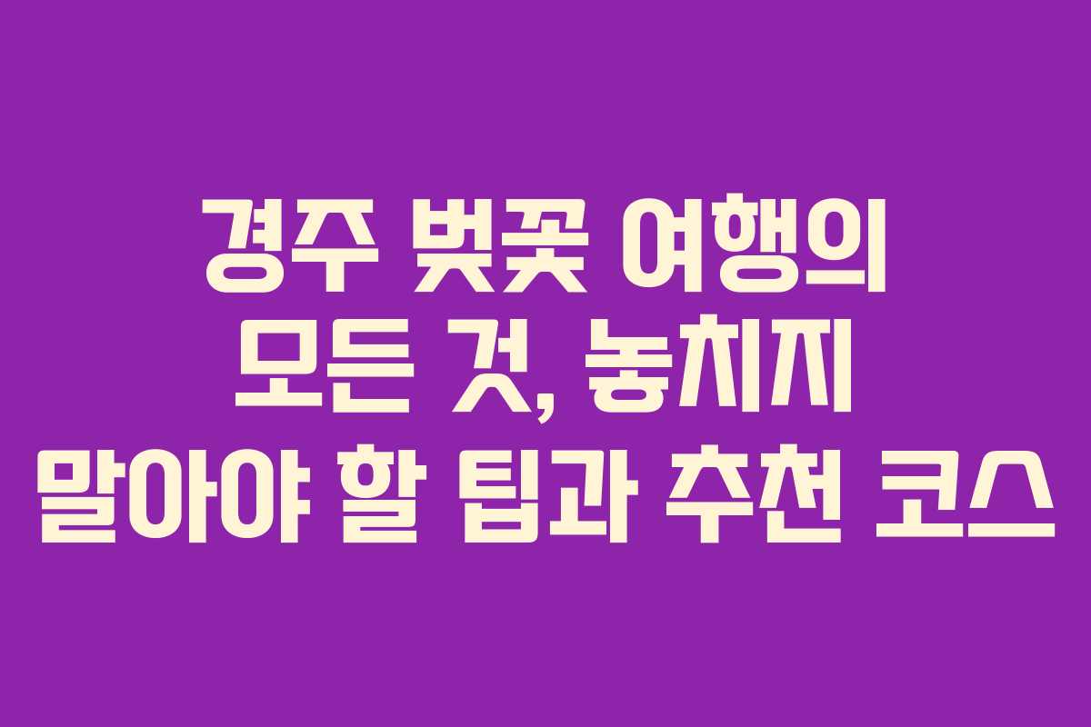 경주 벚꽃 여행을 계획하면서 다음과 같은 가이드를 참고하세요: