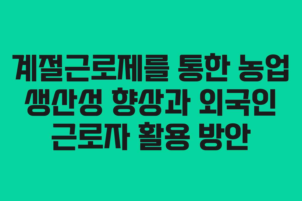 계절근로제를 활용한 농업 경영 전략