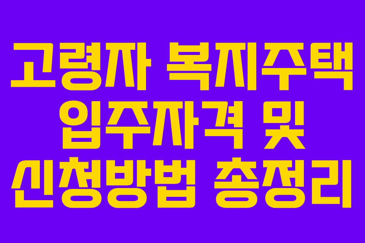 고령자 복지주택에 입주하기 위해서는 다음의 조건을 충족해야 합니다.