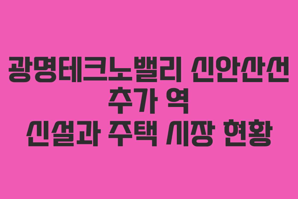 - 신안산선 추가 역 신설과 광명테크노밸리의 발전