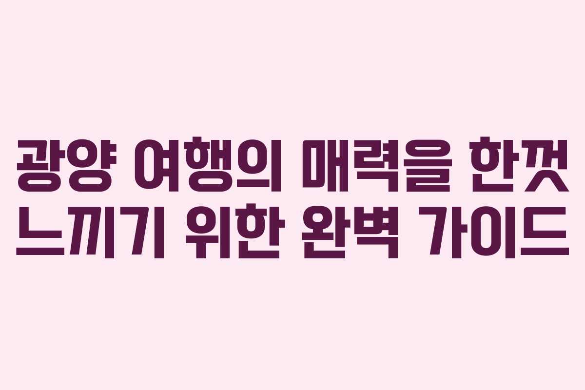 이처럼 광양은 사계절 내내 즐길 거리가 풍부한 지역입니다. 각 계절마다 다른 매력을 가진 광양을 방문해보는 것은 매우 귀중한 경험이 될 것입니다.