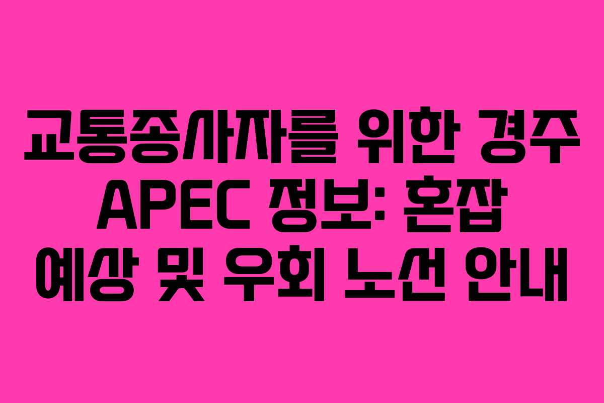 2025년 11월에 경주에서 개최되는 APEC 정상회의는 아시아태평양 경제협력체의 중요한 행사로, 세계 여러 나라의 정상과 외빈들이 모입니다. 이로 인해 경주 지역의 교통 혼잡이 예상되며, 교통 종사자들은 사전에 필요한 정보를 숙지하는 것이 중요합니다. 본 글에서는 APEC 개최에 따른 혼잡 예상 구간, 우회 노선 및 교통 종사자를 위한 유용한 팁을 정리했습니다.