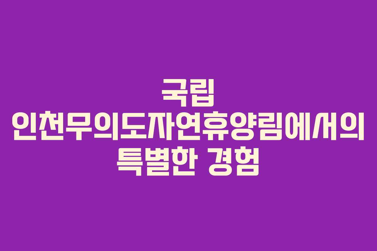 국립 인천무의도자연휴양림은 인천 중구 무의동에 위치하여, 자연 속에서 휴식을 취할 수 있는 이상적인 장소입니다. 이번에 성수기 접수에 당첨되어 다녀온 경험을 통해 이곳의 매력을 여러분과 공유하고자 합니다. 휴양림의 운영 시간과 예약 방법, 그리고 실제 방문 시의 소감까지 자세히 설명하겠습니다.