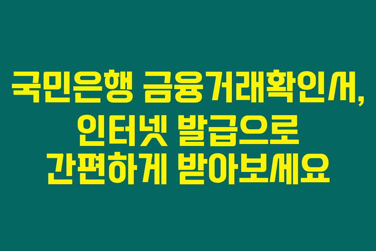 국민은행의 금융거래확인서 인터넷 발급 서비스는 많은 편리함을 제공하며, 시간을 절약하고 효율적으로 금융 상황을 관리할 수 있도록 도와줍니다. 여러분도 이 유용한 서비스를 통해 더 나은 금융 관리에 도전해 보세요!