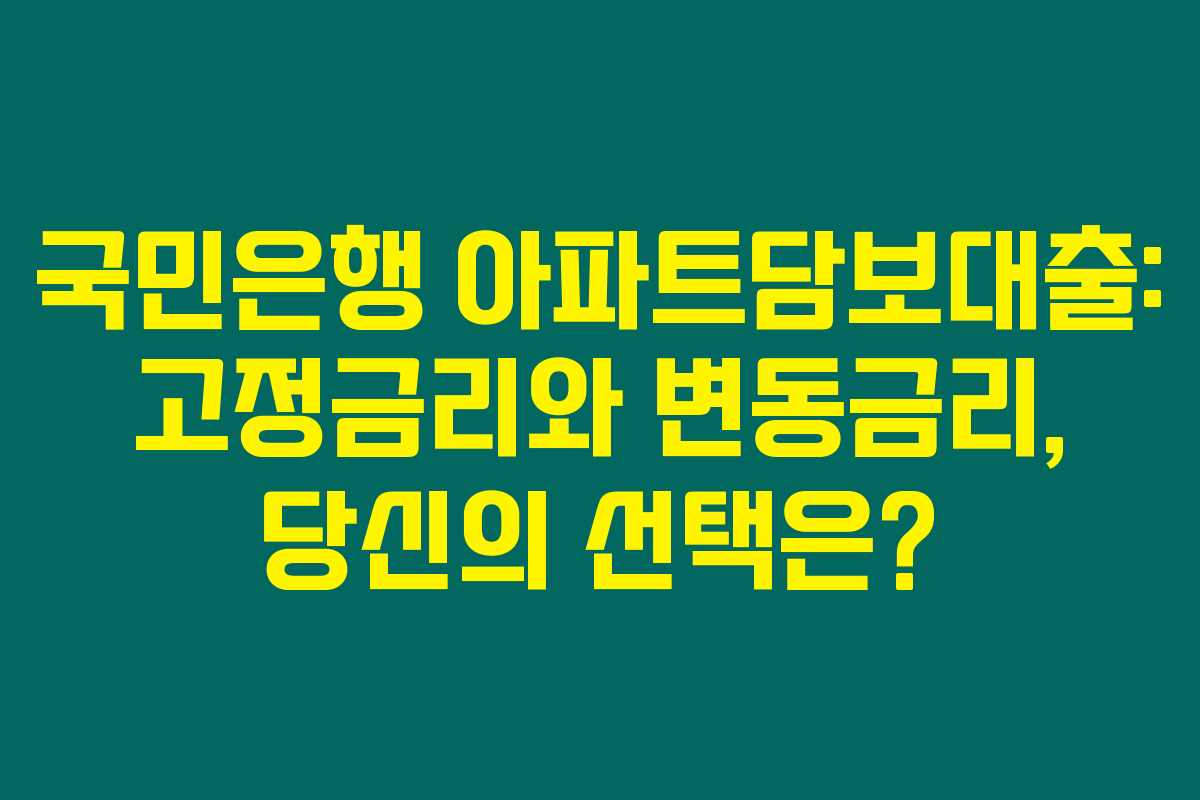 제가 알아본 바로는, 아파트를 구입하거나 기존 대출을 대환할 때 가장 먼저 고려해야 할 것은 바로 국민은행 아파트담보대출의 금리 선택입니다. 고정금리와 변동금리 중 어느 것이 더 유리할까요? 아래를 읽어보시면, 두 가지 금리 유형의 차이점과 상황별 최적 선택법을 확인할 수 있습니다.