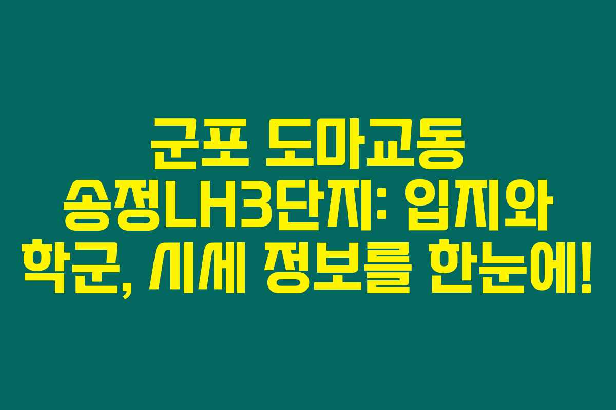 입주를 고민하는 분들이라면, 군포 도마교동 송정LH3단지에 대한 정보는 필수적이에요. 이 지역은 어떤 장점이 있을까요? 학군과 평형, 시세, 입지에 대한 궁금증을 해결해 드릴게요. 아래를 읽어보시면 이 아파트에 대한 모든 궁금증을 해소할 수 있을 거예요. 군포 및 도마교동 지역의 부동산 시장에서 놓치지 말아야 할 꼼꼼한 정보를 드리겠습니다.