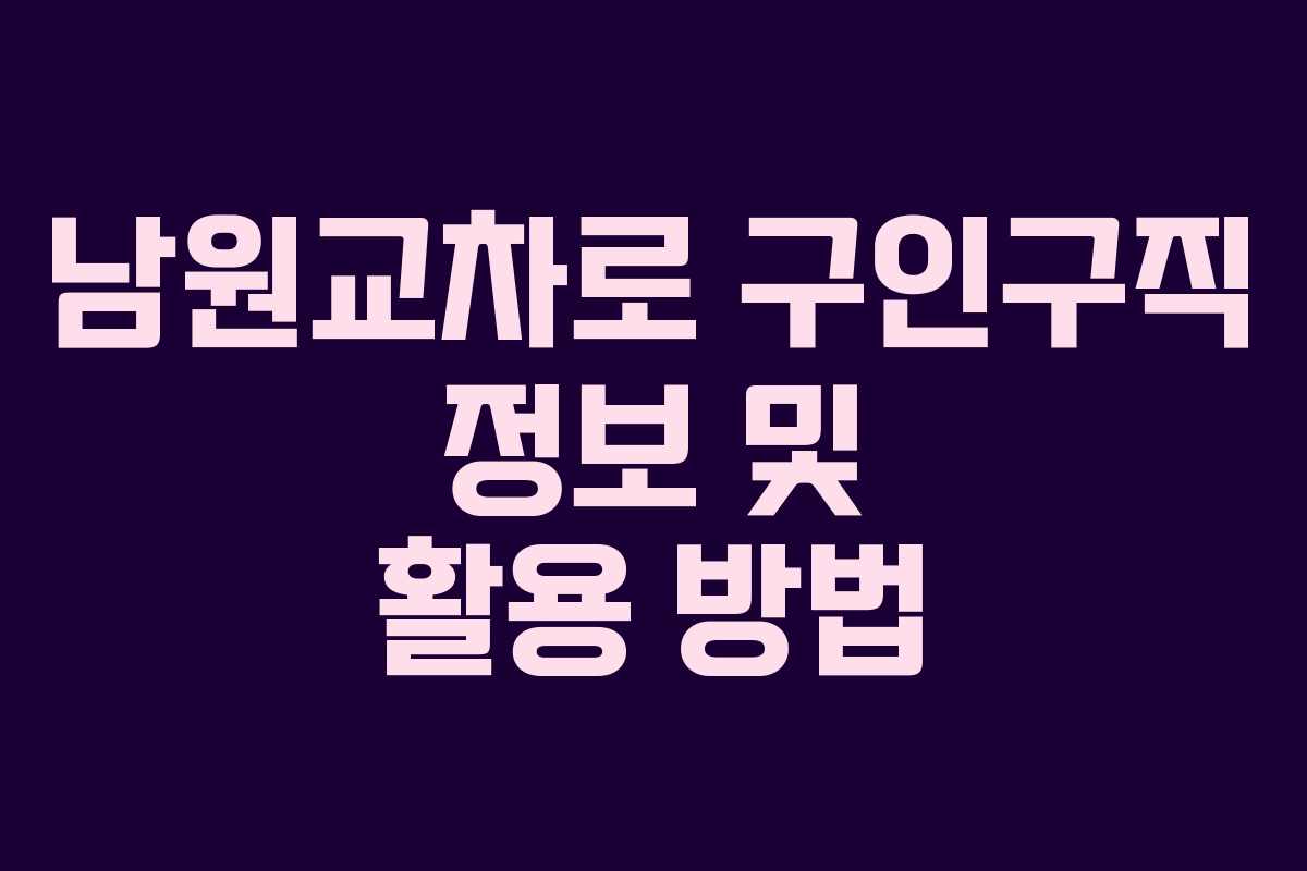 남원교차로 구인구직 정보 및 활용 방법