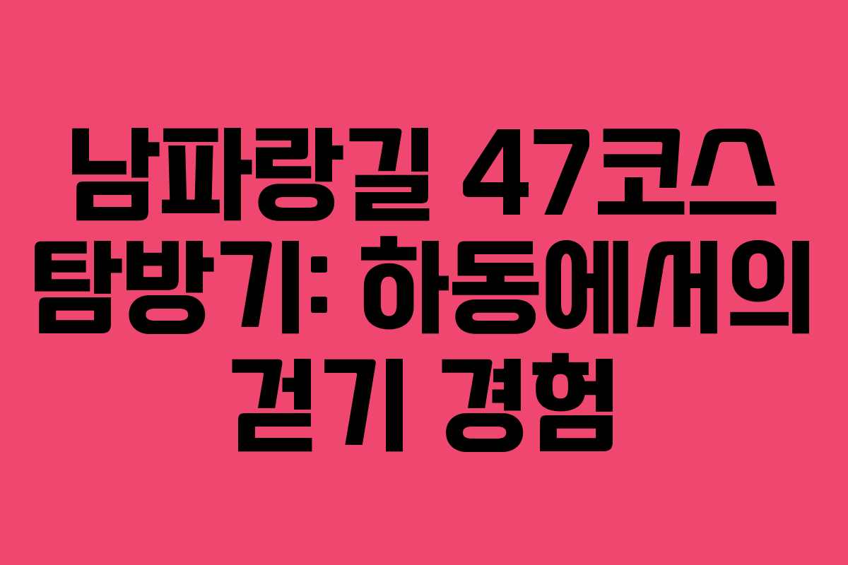 남파랑길 47코스는 경상남도 하동, 사천, 남해를 연결하는 아름다운 경관을 자랑하는 코스입니다. 이 코스는 해양과 산의 조화를 느낄 수 있는 특별한 경험을 제공하며, 걷는 이들에게 많은 생각과 감정을 불러일으킵니다. 2026년 기준으로 이 코스를 탐방할 때의 현황과 유의사항을 살펴보겠습니다.