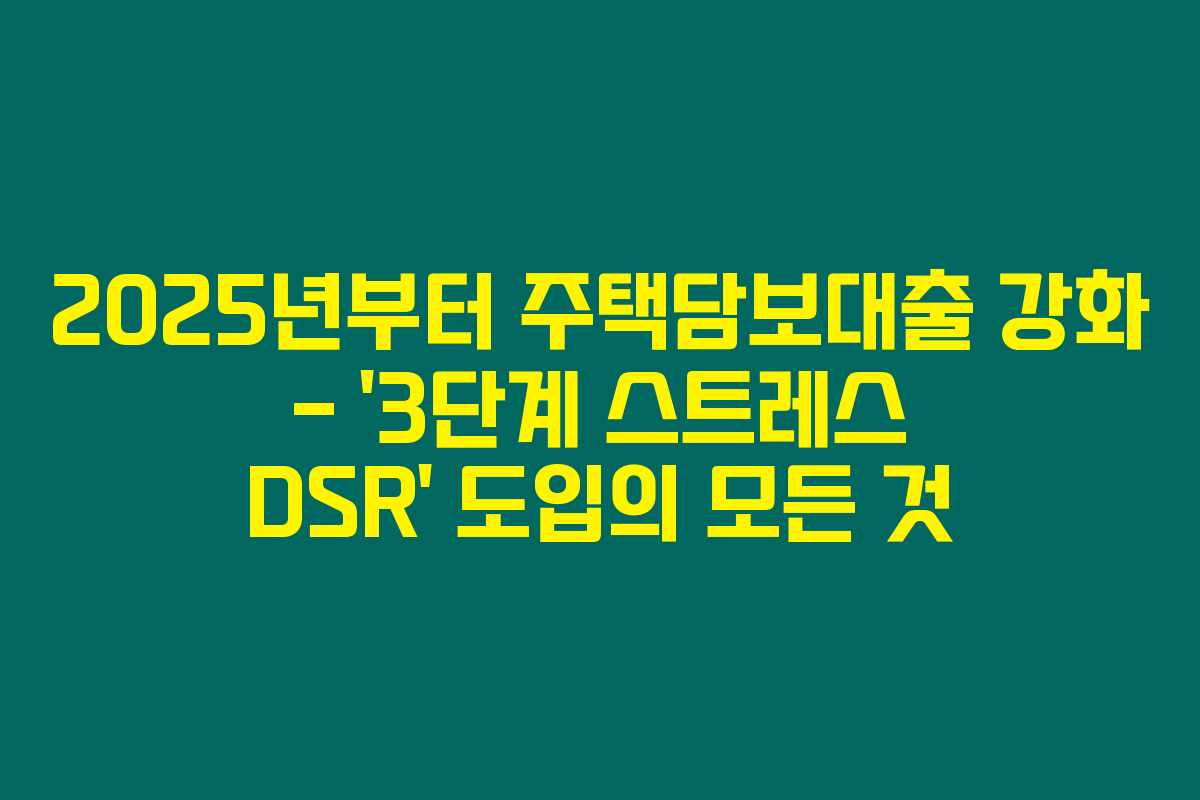 2025년부터 주택담보대출 강화 - '3단계 스트레스 DSR' 도입의 모든 것