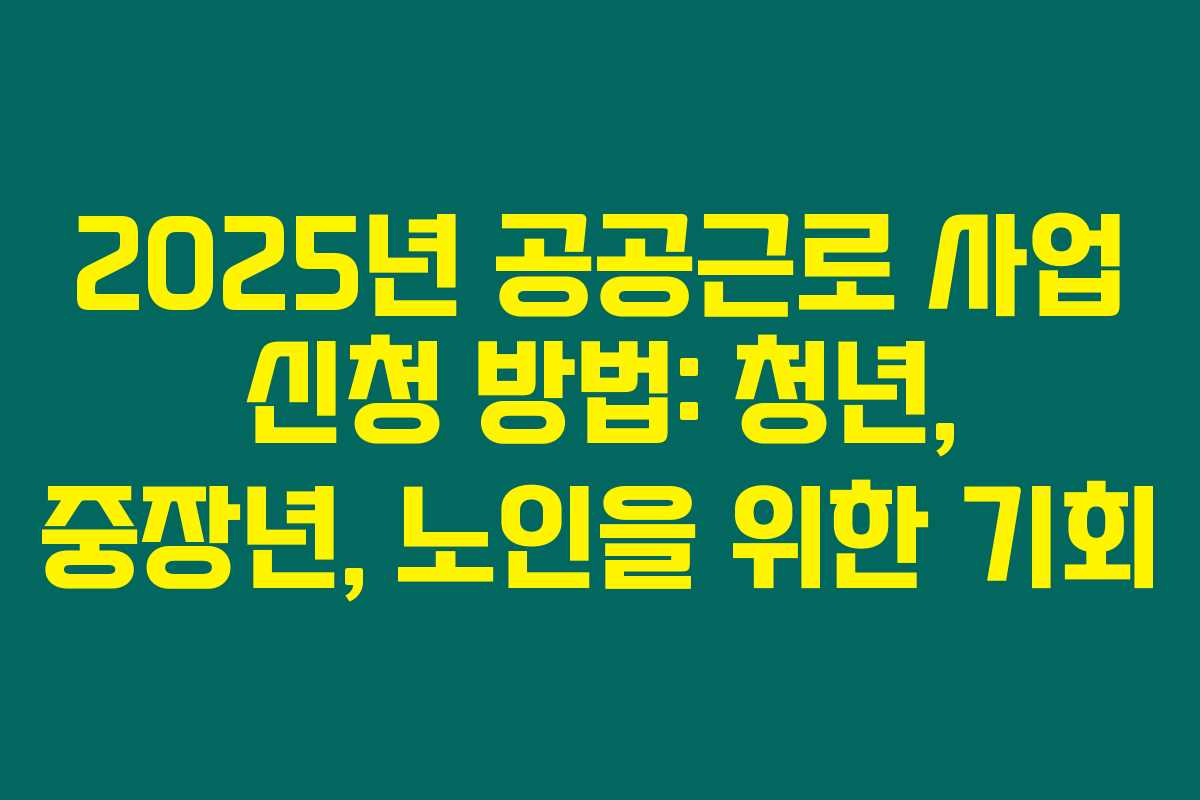 제가 직접 알아본 바로는, 2025년의 공공근로 사업이 청년, 중장년, 노인층 모두에게 중요한 일자리 기회를 제공하고 있습니다. 이 프로그램은 경제적 어려움을 해결하고, 안정적인 소득을 제공하는데 큰 역할을 한다고 느꼈습니다. 아래를 읽어보시면, 신청 방법과 각 연령대에 맞춘 업무 배정에 대해 더 자세히 알아보실 수 있습니다.