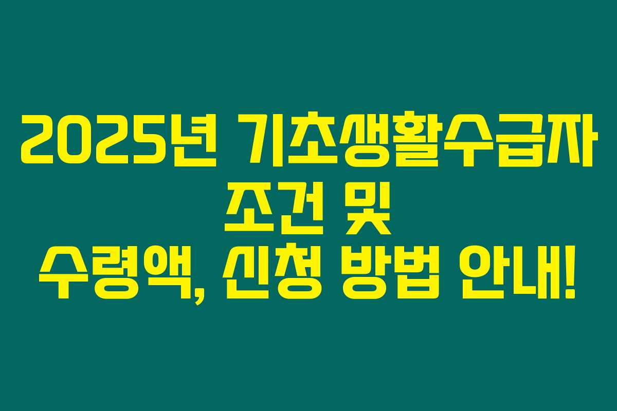 2025년 기초생활수급자 조건 및 수령액, 신청 방법 안내!