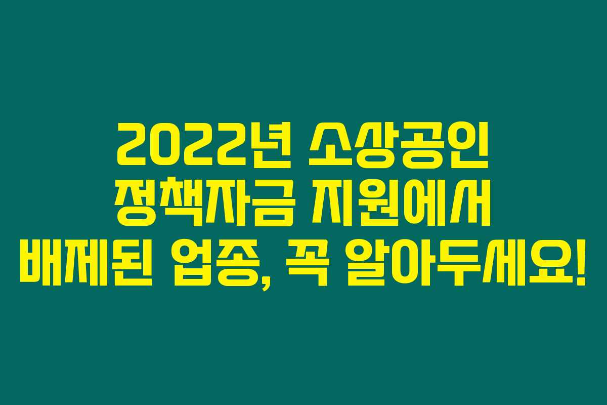 2022년에 소상공인 정책자금 지원에서 제외된 업종을 알고 계신가요? 만약 이런 정보 없이 신청을 하면 지원을 받지 못할 수도 있어요. 그러니 아래를 읽어보시면 지원이 가능한 업종과 배제된 업종에 대한 정확한 정보를 확인하고 더 나은 경영 전략을 세우는 데 큰 도움이 될 거예요.