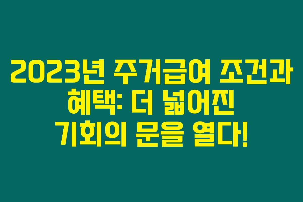 2023년 주거급여 조건과 혜택: 더 넓어진 기회의 문을 열다!