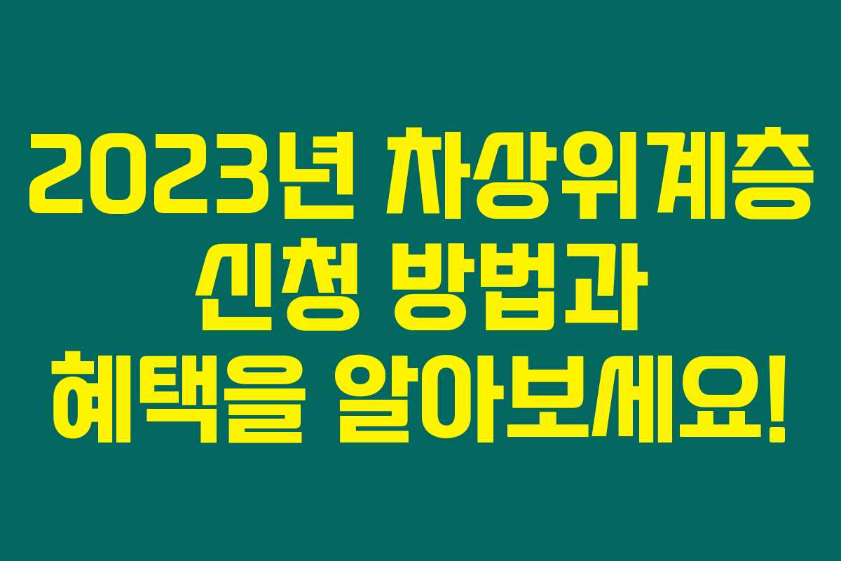 제가 직접 알아본 바로는, 2023년 차상위계층의 신청과 조건, 혜택에 대한 정보는 많은 이들에게 큰 도움이 될 수 있습니다. 특히, 차상위계층은 다양한 복지 혜택을 받을 수 있는 기회를 제공하기 때문에, 해당 조건을 충족한다면 꼭 신청하셔야 합니다. 아래를 읽어보시면, 차상위계층에 대한 자세한 정보를 확인할 수 있을 것입니다.