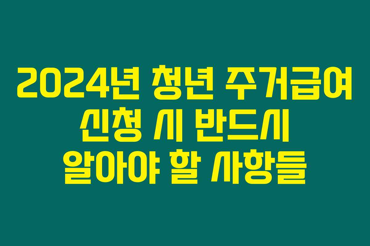2024년 청년 주거급여 신청 시 반드시 알아야 할 사항들