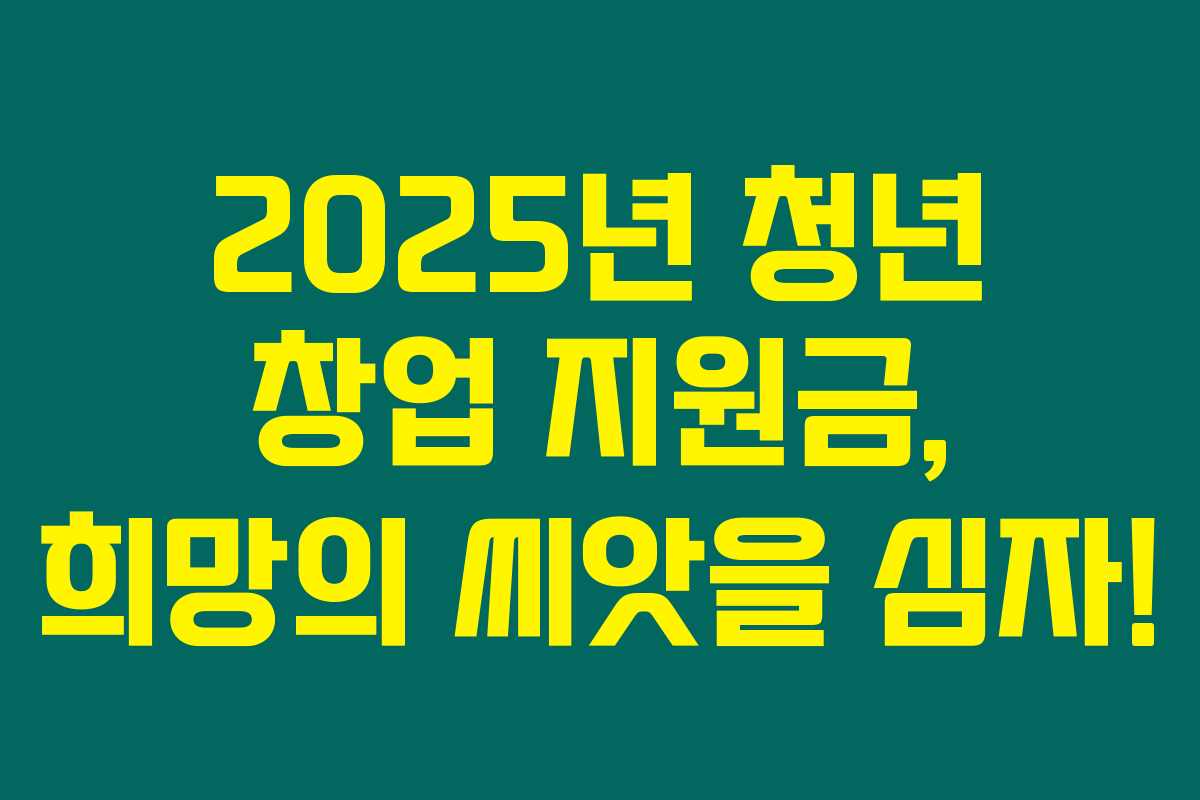 2025년 청년 창업 지원금, 희망의 씨앗을 심자!