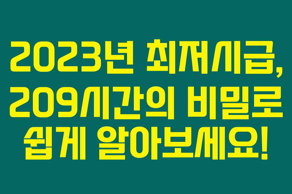 2023년 최저시급과 209시간의 비밀을 상세히 알아보았어요. 근로자라면 누구나 이 내용을 숙지하고 있어야 하며, 이러한 정보를 통해 스스로의 권리를 보호하는 것도 매우 중요하답니다. 최저시급 계산기를 유용하게 활용하며, 꼭 필요한 사항만 체크하시길 바래요.