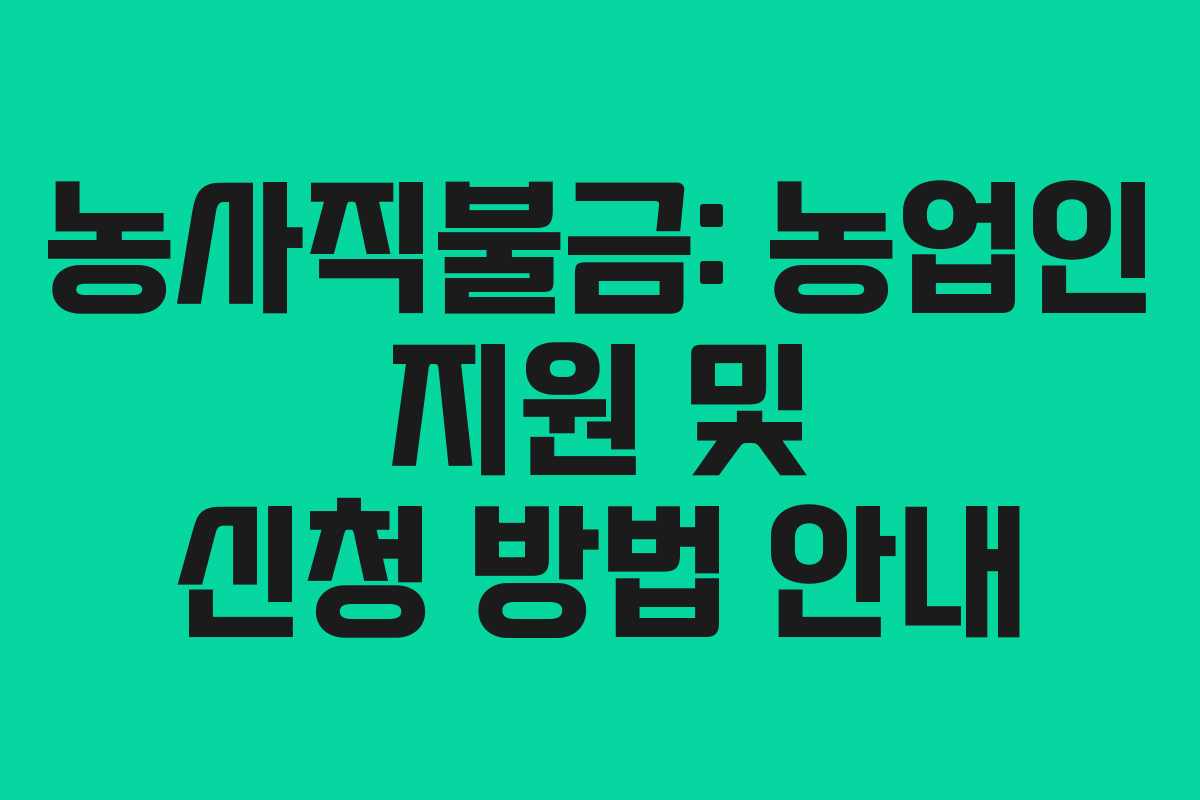 이렇게 다양한 형태로 농업인들을 지원하며, 농촌의 지속 가능한 발전을 도모하고 있습니다.