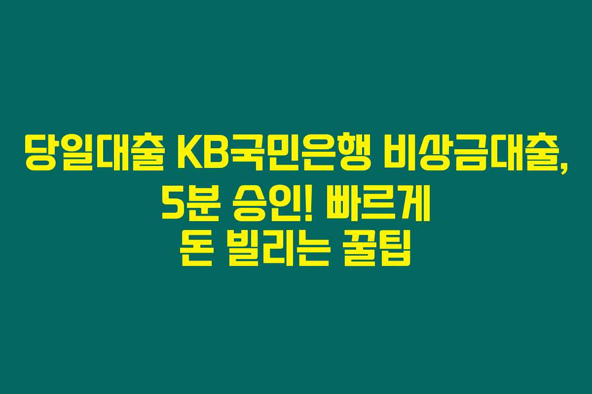 당일대출 KB국민은행 비상금대출, 5분 승인! 빠르게 돈 빌리는 꿀팁