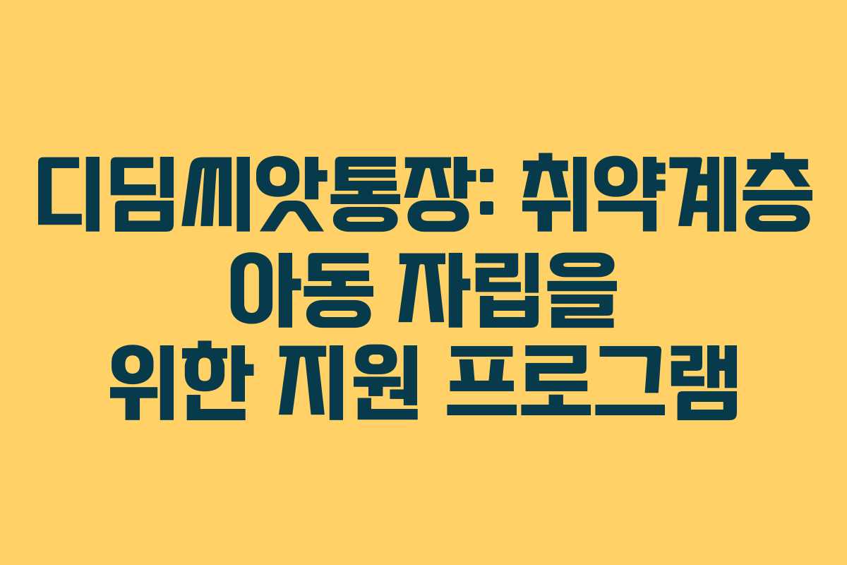 디딤씨앗통장은 취약계층 아동이 안정적인 미래를 준비할 수 있도록 돕는 특별한 통장입니다. 이 통장은 저축을 통해 정부의 매칭 지원금을 받을 수 있어, 아동의 자립 자금을 효과적으로 마련하는 데 기여합니다.