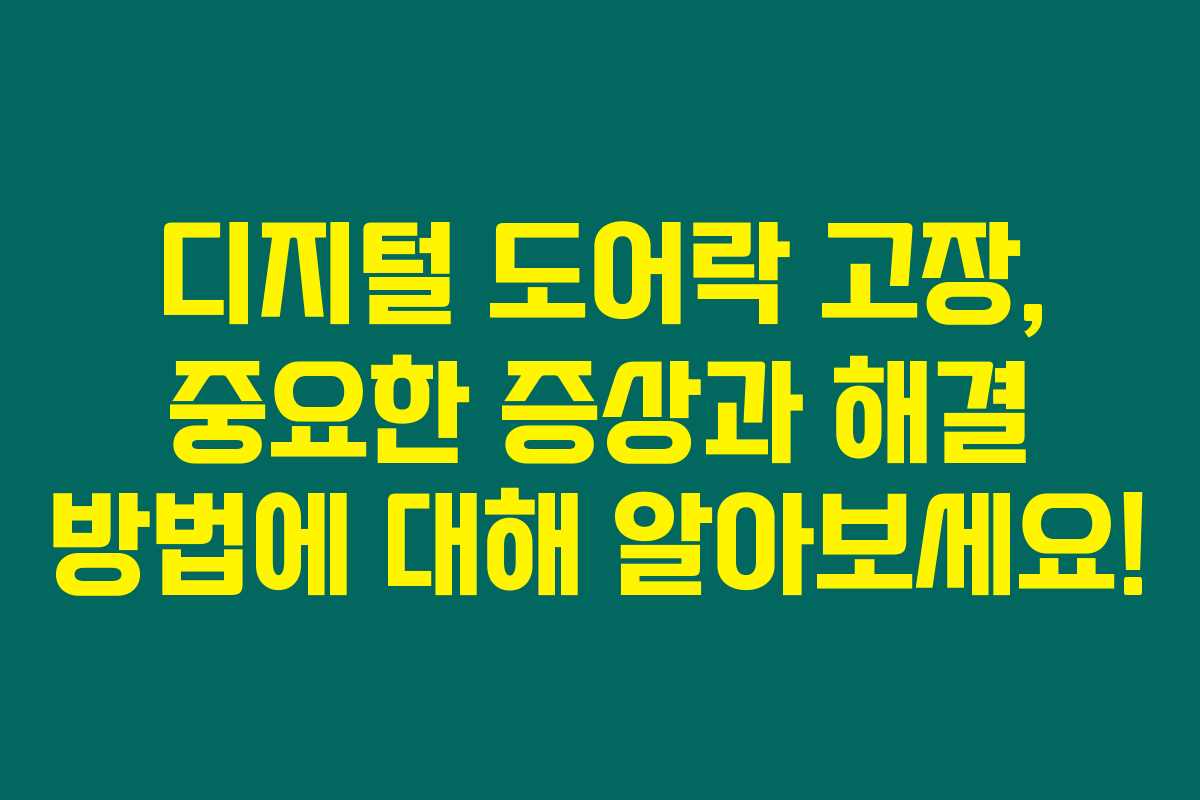 제가 직접 경험해본 결과로는, 디지털 도어락은 가정의 보안을 지키는 데 중요한 역할을 하지만, 고장이 나면 불안한 상황이 발생할 수 있어요. 특히 배터리 문제나 인식 오류 등 다양한 증상으로 인해 문을 열지 못할 때는 당황스럽기 마련이죠. 아래를 읽어보시면, 디지털 도어락의 주요 고장 증상과 이를 해결하는 방법에 대한 유용한 정보를 얻으실 수 있을 거예요.