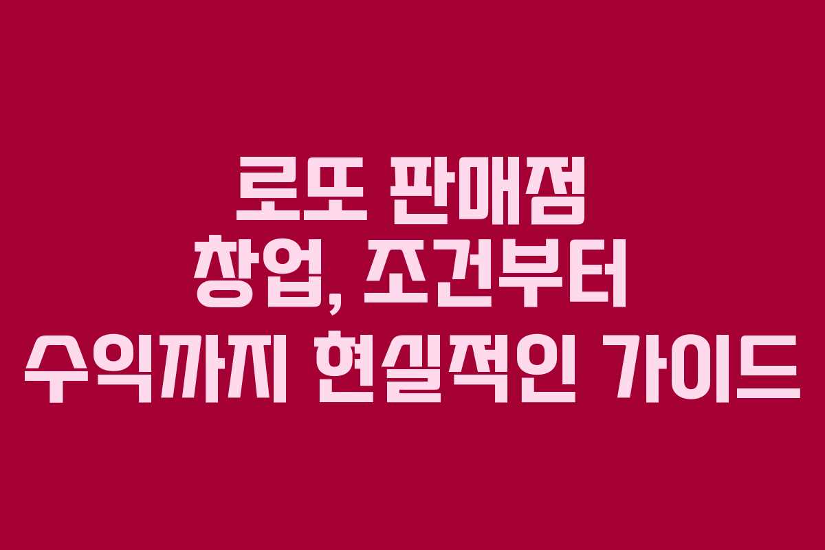 로또 판매점 창업, 조건부터 수익까지 현실적인 가이드