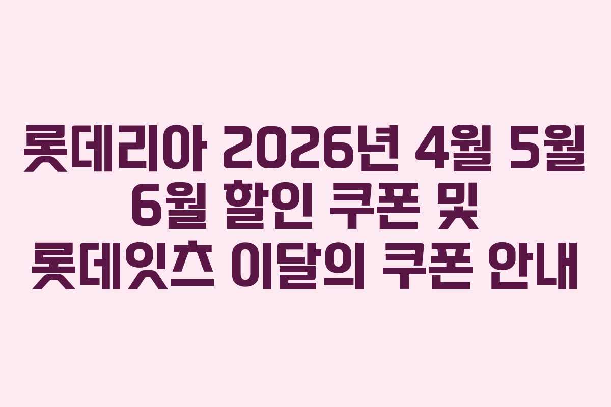 롯데리아 2026년 4월 5월 6월 할인 쿠폰 및 롯데잇츠 이달의 쿠폰 안내