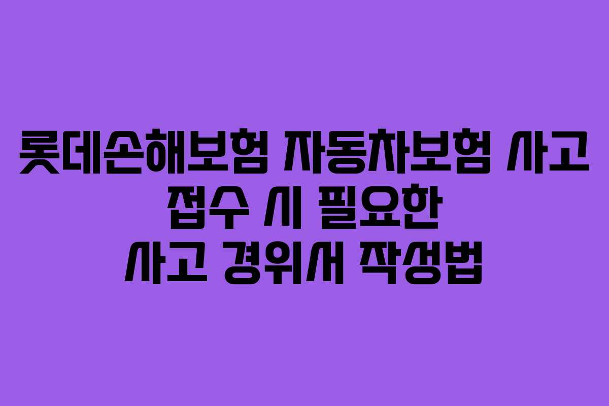 차량을 운전하다 보면 예기치 못한 사고가 발생할 수 있습니다. 저도 얼마 전, 심각하지는 않지만 불가피하게 사고를 경험하게 되었습니다. 사고 발생 후, 무엇보다도 중요한 것은 빠르고 정확한 사고 경위서 작성을 통해 보험사에 신속히 사고를 접수하는 것이었습니다. 이 글에서는 롯데손해보험의 자동차보험 사고 접수 시 필요한 사고 경위서 작성법과 고객센터 활용 방법에 대해 상세히 안내하겠습니다.