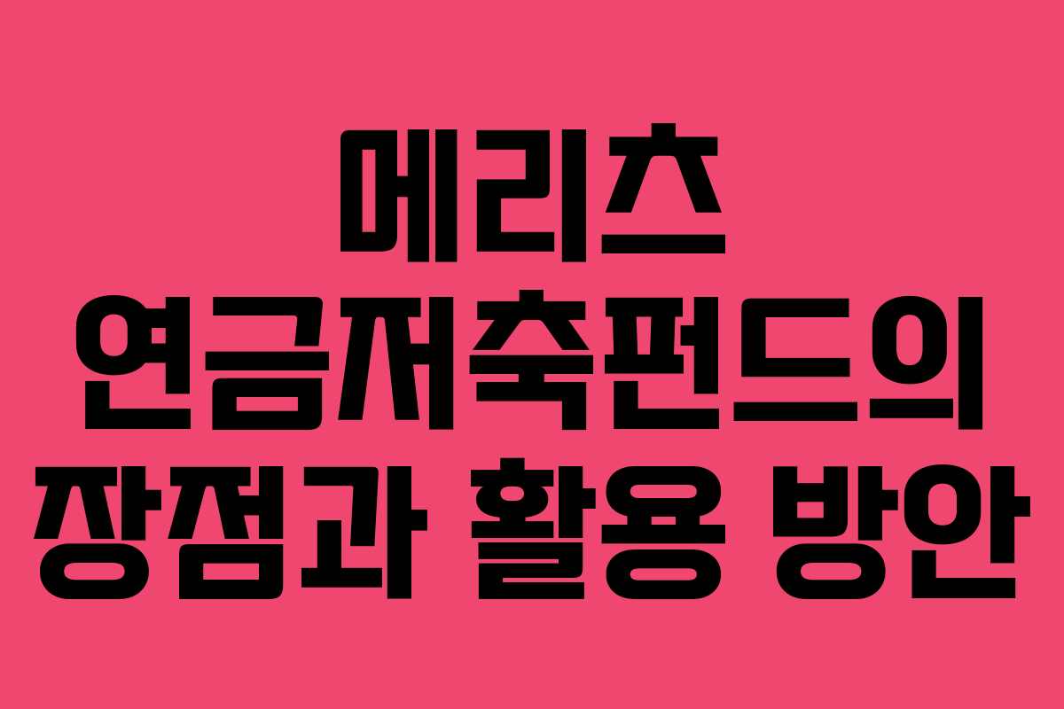 메리츠 연금저축펀드의 장점과 활용 방안