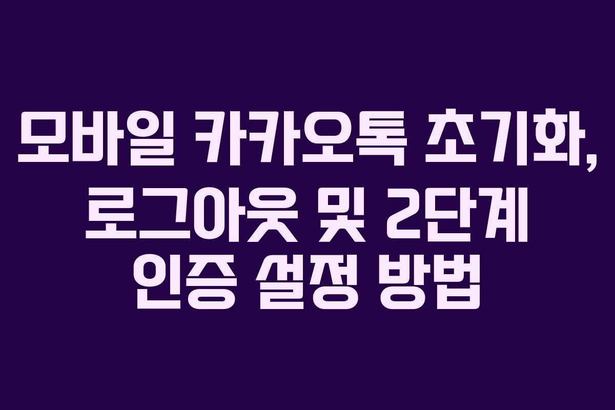 카카오톡은 한국에서 가장 많이 사용되는 메신저 앱입니다. 그러나 가끔 앱이 느려지거나 오류가 발생할 수 있어, 초기화가 필요할 때가 있습니다. 이 글에서는 카카오톡의 초기화, 로그아웃, 그리고 2단계 인증 설정 방법에 대해 자세히 설명하겠습니다.