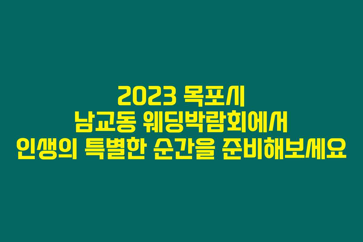 웨딩은 모든 이에게 잊지 못할 특별한 날이에요. 그렇다면 이 특별한 순간을 준비하는 과정은 어떨까요? 결혼을 준비하는 예비 신랑신부라면, 2023년 목포시 남교동에서 열리는 웨딩박람회에 꼭 참여해보세요. 이 박람회는 다양한 업체가 참여해 최신 웨딩 트렌드와 혜택을 알아볼 수 있는 절호의 기회랍니다. 아래를 읽어보시면 어떤 혜택을 놓칠 수 없는지 확인할 수 있으니 꼭 주목해 주세요!
