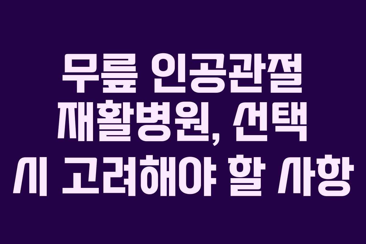무릎 인공관절 수술 후 적절한 재활을 받는 것이 매우 중요합니다. 이 글에서는 재활병원을 선택할 때 고려해야 할 두 가지 주요 조건을 설명합니다.