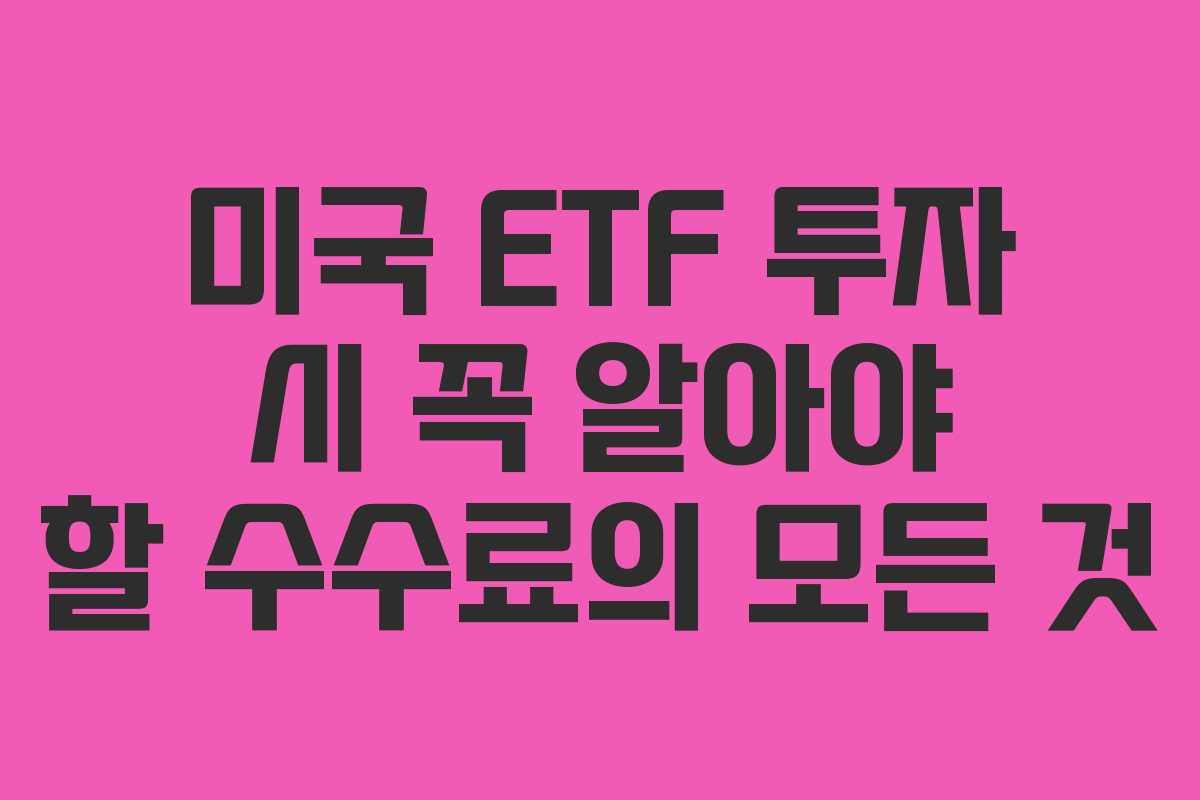 미국 ETF에 투자할 때 수익률 못지않게 중요한 요소는 바로 수수료입니다. 다양한 수수료가 존재하므로, 이를 미리 알고 준비하는 것이 필수적입니다. 여기서는 ETF 투자 시 발생하는 주요 수수료에 대해 자세히 살펴보겠습니다.