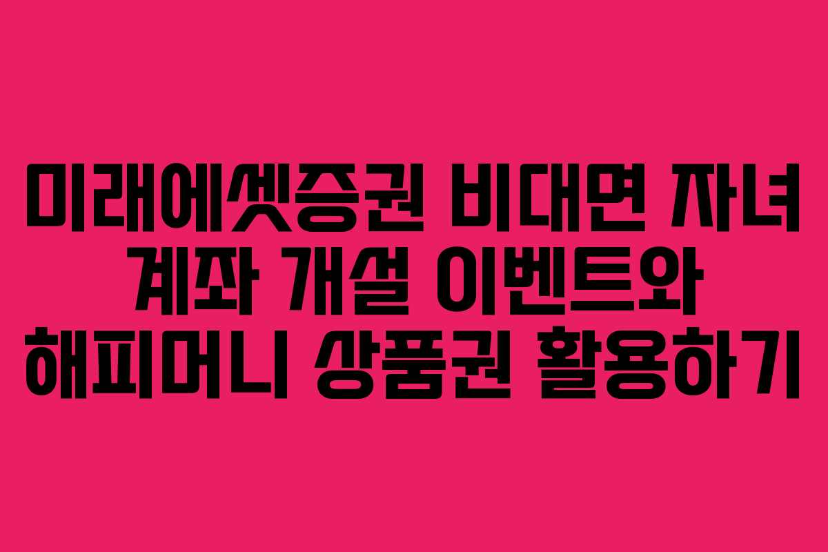 최근 미성년자를 위한 비대면 계좌 개설 서비스가 큰 주목을 받고 있다. 특히 미래에셋증권은 자녀를 둔 부모들 사이에서 편리한 방법으로 인식되고 있다. 2026년 기준으로, 이 서비스는 더욱 활성화되어 있으며, 많은 부모들이 이를 통해 자녀의 재정 교육을 시작하려고 한다. 이번 글에서는 미래에셋증권의 비대면 자녀 계좌 개설 이벤트와 함께 해피머니 상품권의 활용 방법에 대해 자세히 살펴보겠다.