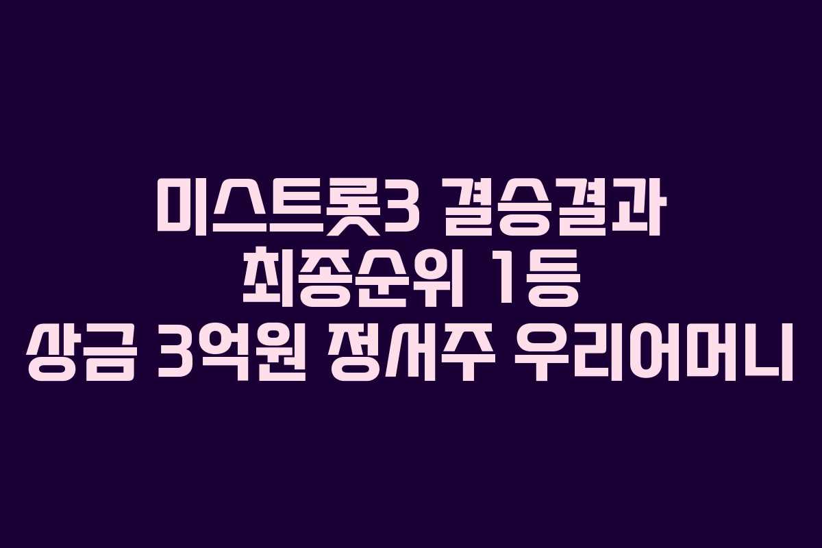 미스트롯3 결승결과 최종순위 1등 상금 3억원 정서주 우리어머니