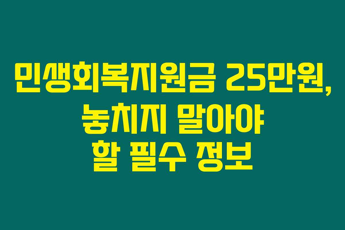 마지막으로, 민생회복지원금 25만원은 저소득층 가구에게 실질적인 도움이 될 수 있는 프로그램이므로, 자세한 내용과 자격 조건을 잘 확인하시고 지원하시길 바랍니다. 많은 사람들이 이 지원금을 통해 경제적 부담을 덜 수 있었으면 좋겠어요. 앞으로도 다른 지원금에 대한 정보가 필요하시면 언제든지 확인해보세요.