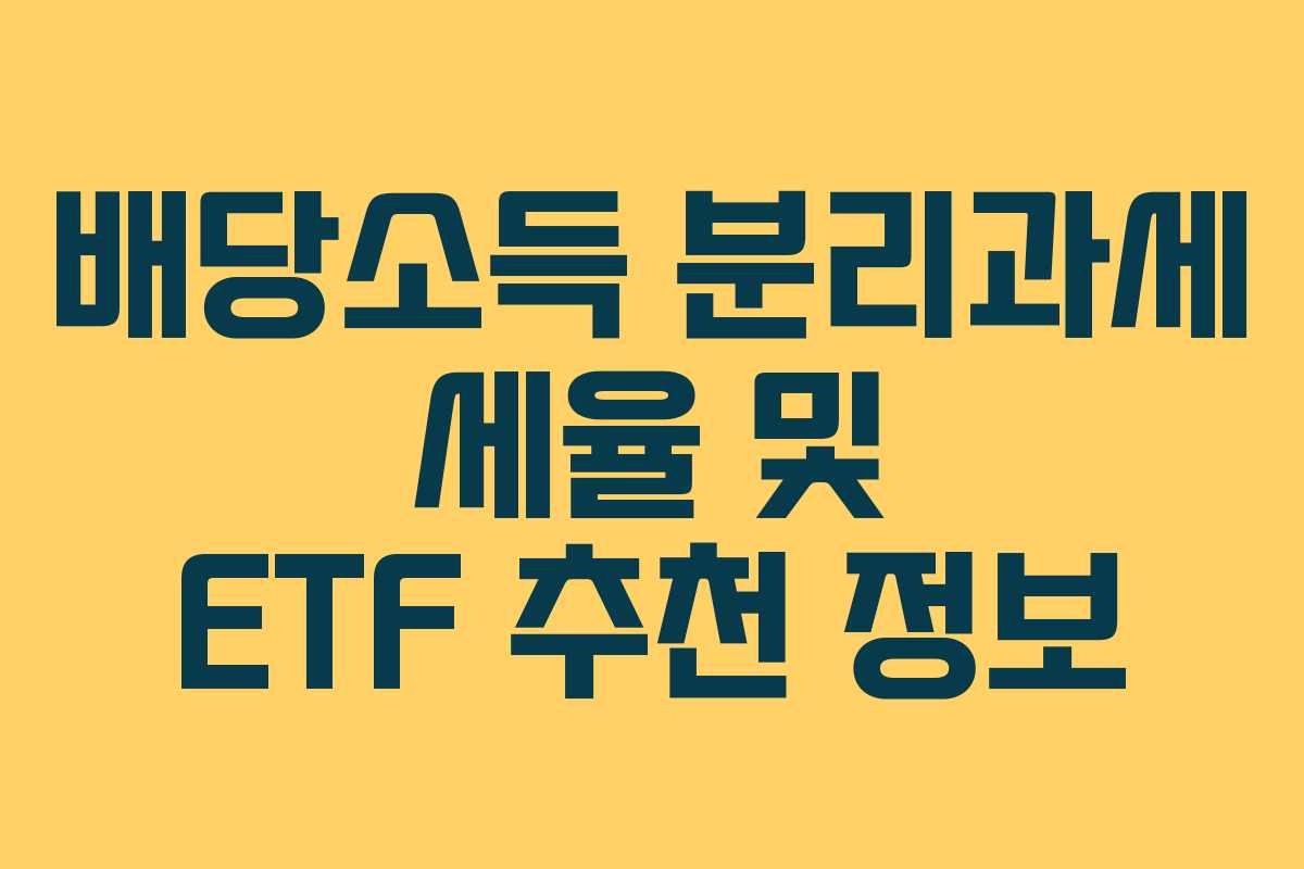 주식 투자자들에게 세금 문제는 중요한 고려사항입니다. 특히, 미국 주식에 투자하는 경우 더욱 신경 써야 할 필요가 있습니다. 오늘은 배당소득 분리과세 세율과 관련된 정보를 알아보고, 이에 따른 ETF 추천도 함께 살펴보겠습니다.