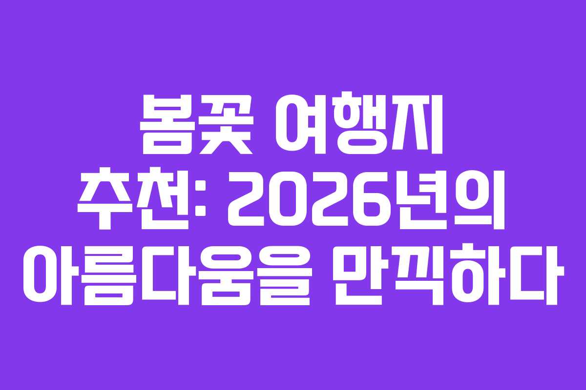 2026년 봄, 화사한 꽃들이 만개하는 시기가 돌아왔다. 전국 각지에서 이 시기를 맞아 여행을 계획하는 이들에게 도움이 될 만한 정보를 제공한다. 특히 동백꽃, 복사꽃, 유채꽃, 그리고 벚꽃이 만개하는 장소를 소개하며, 여행할 때 유의해야 할 점들도 함께 안내한다. 이 가이드를 통해 다채로운 봄꽃을 즐길 수 있는 여행지를 탐험해 보자.