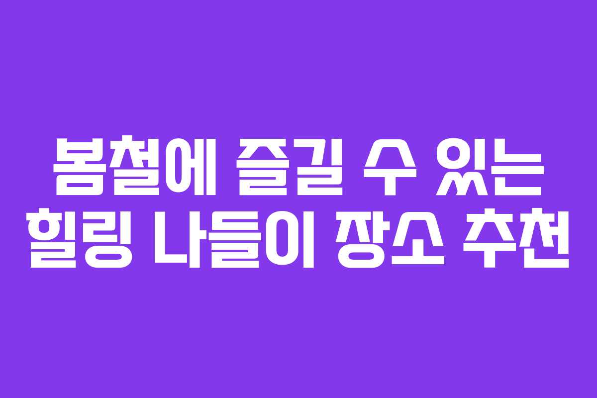 따뜻한 봄날, 꽃이 만개하는 시기에 자연을 만끽하며 힐링할 수 있는 장소를 찾는 것은 참으로 기분 좋은 일입니다. 특히 50대 이상이 부담 없이 즐길 수 있는 완만한 등산이나 산책 코스는 더욱 환영받고 있습니다. 이번 포스팅에서는 서울과 경기, 그리고 전국의 숨은 명소들을 정리해 보았습니다. 소중한 가족과 함께 봄을 만끽할 수 있는 기회를 놓치지 마세요.