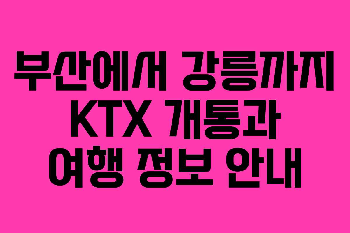 부산과 강릉 간의 이동이 간편해지는 날이 다가오고 있다. 2025년 1월 1일부터 부산에서 강릉까지 환승 없이 기차를 이용할 수 있는 새로운 시대가 시작된다. 그동안 거리로 인해 여행이 부담스러웠던 많은 이들에게 반가운 소식이 아닐 수 없다. 이번 포스팅에서는 부산강릉동해선의 노선, 예매 방법, 그리고 예상되는 가격에 대해 구체적으로 알아보겠다.