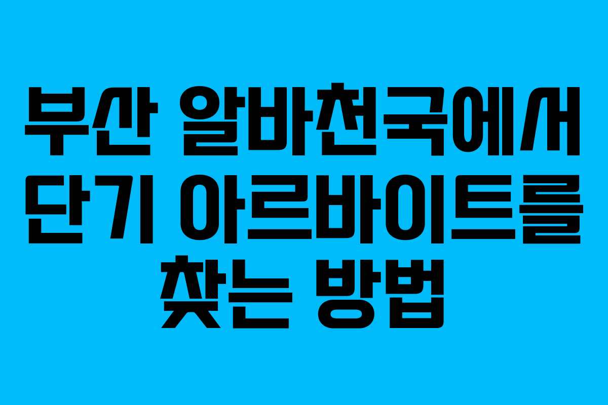 부산 알바천국에서 아르바이트를 찾기 위한 실행 절차는 다음과 같다.
