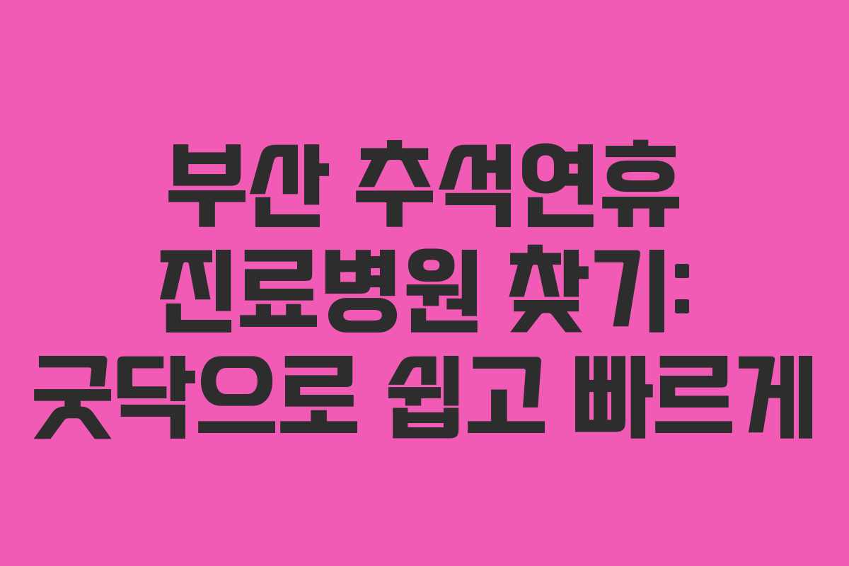 부산에서 추석 연휴 동안 진료 가능한 병원을 찾는 것은 어려운 일입니다. 수많은 병원이 휴무에 들어가면서 진료 여부와 시간을 사전에 확인하는 것이 매우 중요합니다. 이번 글에서는 ‘굿닥(Goodoc)’ 앱을 활용하여 부산 지역의 진료 병원과 진료 시간을 확인하는 방법에 대해 알아보겠습니다.