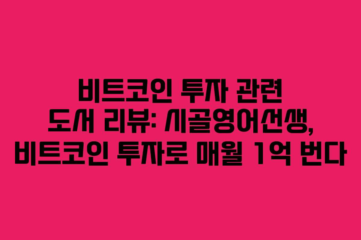 최근 비트코인과 암호화폐에 대한 관심이 높아짐에 따라, 관련 서적을 읽고 싶어하는 사람들이 많아졌습니다. 그중 한 권인 “시골영어선생, 비트코인 투자로 매월 1억 번다”를 읽고 나서의 소감을 공유하고자 합니다. 저자 구대환의 이 책은 비트코인에 대한 기본 개념을 제공한다고 하지만, 여러 가지 이유로 비추천합니다.