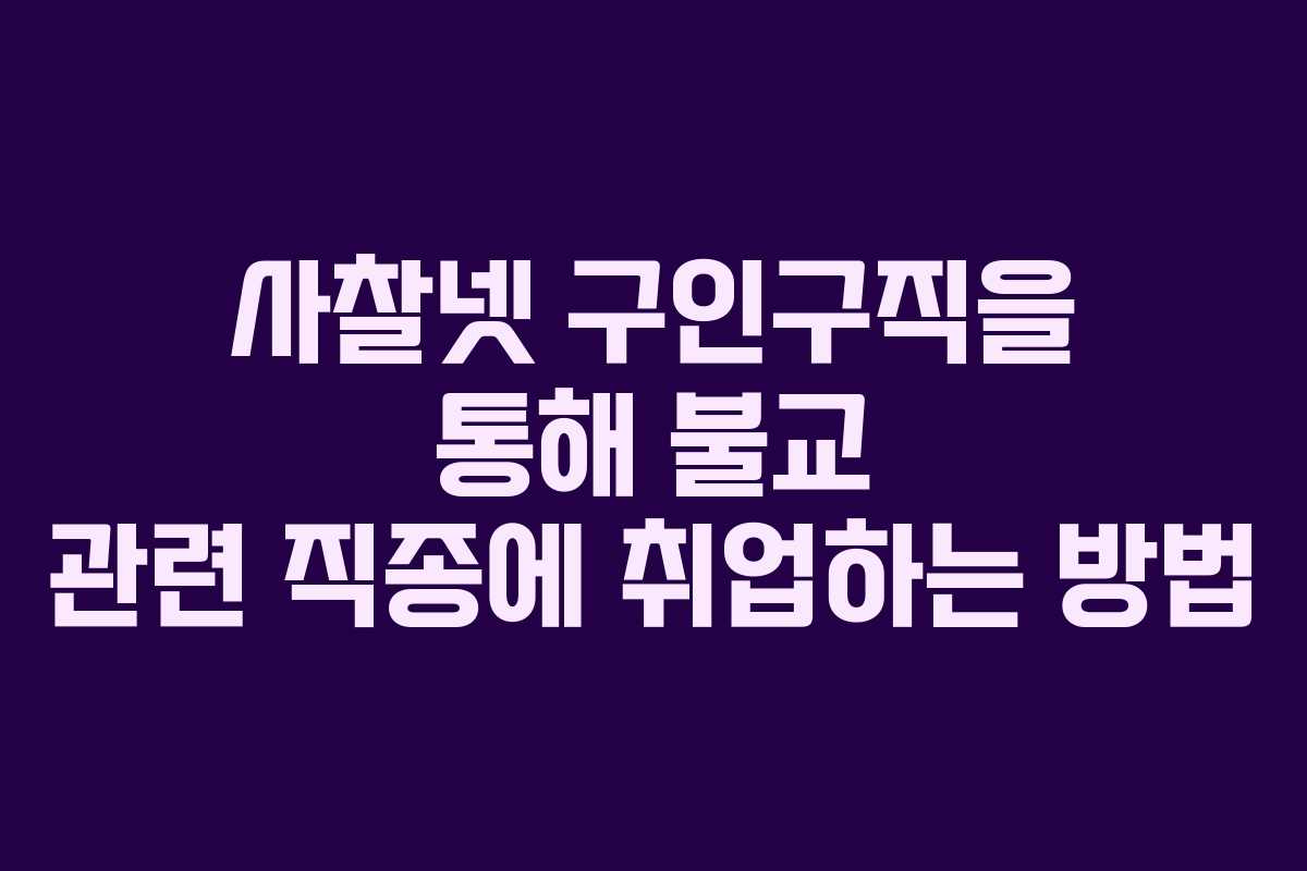 사찰넷 구인구직은 불교 관련 직종을 찾고자 하는 이들에게 유용한 플랫폼입니다. 이 포스팅에서는 사찰넷을 활용하여 다양한 불교 관련 일자리를 찾는 방법에 대해 안내하겠습니다. 불교 관련 직종은 전통적인 일자리 외에도 여러 분야에서 존재하며, 이를 통해 더 많은 사람들에게 기회를 제공하고 있습니다. 불교의 가르침과 함께 사회적 기여를 할 수 있는 직업을 선택하는 것이 중요합니다.