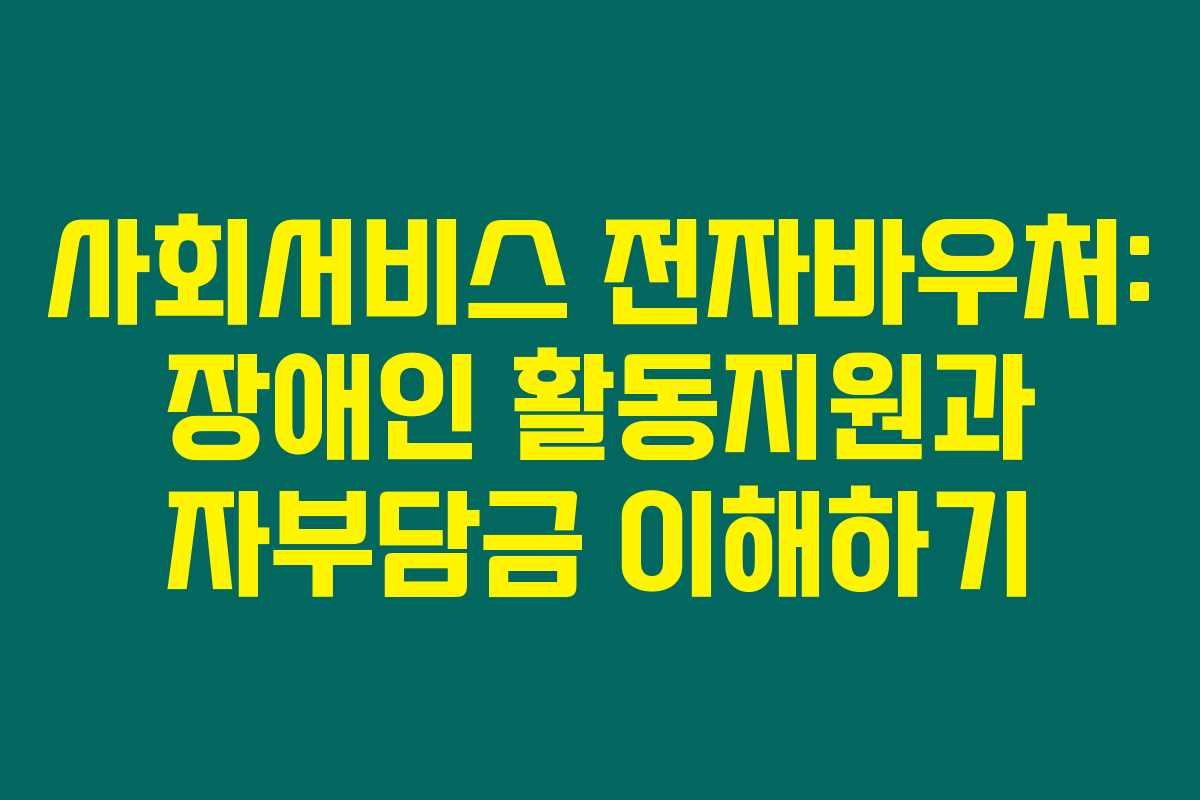 사회서비스 전자바우처는 정부의 복지 정책 중 하나로, 장애인과 같은 사회적 약자에게 필요한 서비스를 제공하기 위해 마련된 제도입니다. 제가 리서치한 결과, 현재 다양한 서비스가 포함되어 있음을 알 수 있었어요. 만약 여러분께서도 장애인을 가족으로 두고 계시다면, 이 전자바우처를 통해 필요한 서비스를 효과적으로 받을 수 있다는 사실이 큰 도움이 될 거예요.